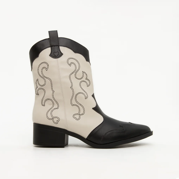 A Bota Mariana Di Valentini transcende o country: ela é moda pura! O design em preto e branco é atemporal, e o bordado artesanal adiciona a ousadia que o seu look precisa. Faça história por onde passar.