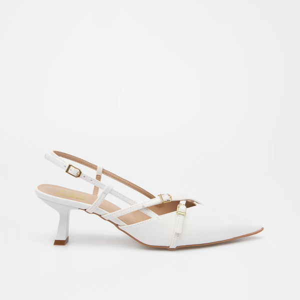Este Slingback foi desenhado para oferecer segurança e bem-estar, mesmo com salto. O salto fino de altura média (cerca de 6 cm) garante a elegância ideal com maior estabilidade e menor esforço do que saltos muito altos. O design slingback, complementado pelas tiras e fivelas ajustáveis, assegura que o sapato permaneça firme no pé, proporcionando um calce confortável e seguro, perfeito para longos períodos de uso sem comprometer a postura.