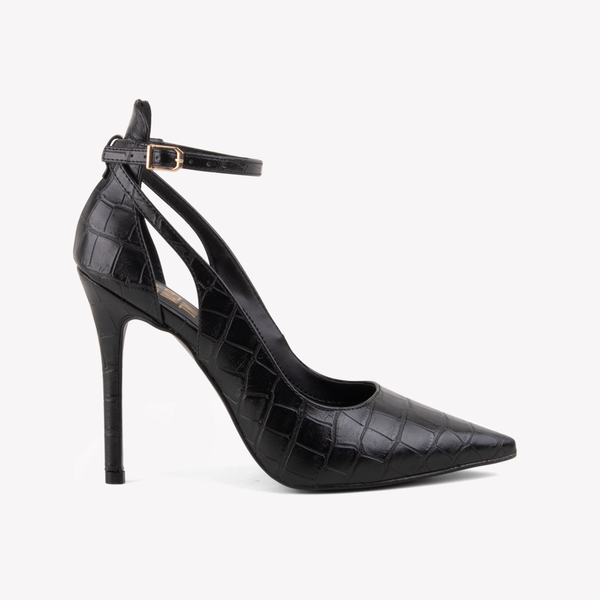 O Scarpin Lolita é a personificação do glamour contemporâneo. Elevando o clássico bico fino a um novo patamar, este modelo apresenta uma textura Napa Croco impecável, que confere profundidade e um brilho sofisticado.