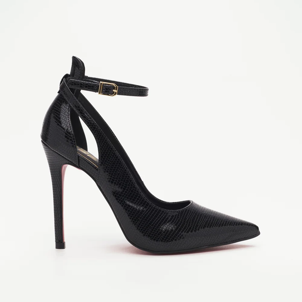 Embora seja um salto alto, o Scarpin Lolita foi projetado para oferecer o máximo de segurança. Possui uma tira delicada e ajustável no tornozelo, garantindo que o calçado permaneça firme e seguro a cada movimento. Sua forma é cuidadosamente construída para proporcionar um calce elegante e, internamente, conta com um acabamento que visa o conforto na planta do pé, permitindo que você mantenha a postura de poder por mais tempo.