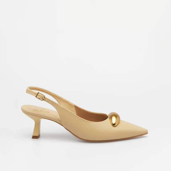 A tradução da sofisticação! O bico fino e o detalhe em esfera dourada trazem um toque de classe e modernidade. É o design perfeito para elevar seu estilo em qualquer ocasião.